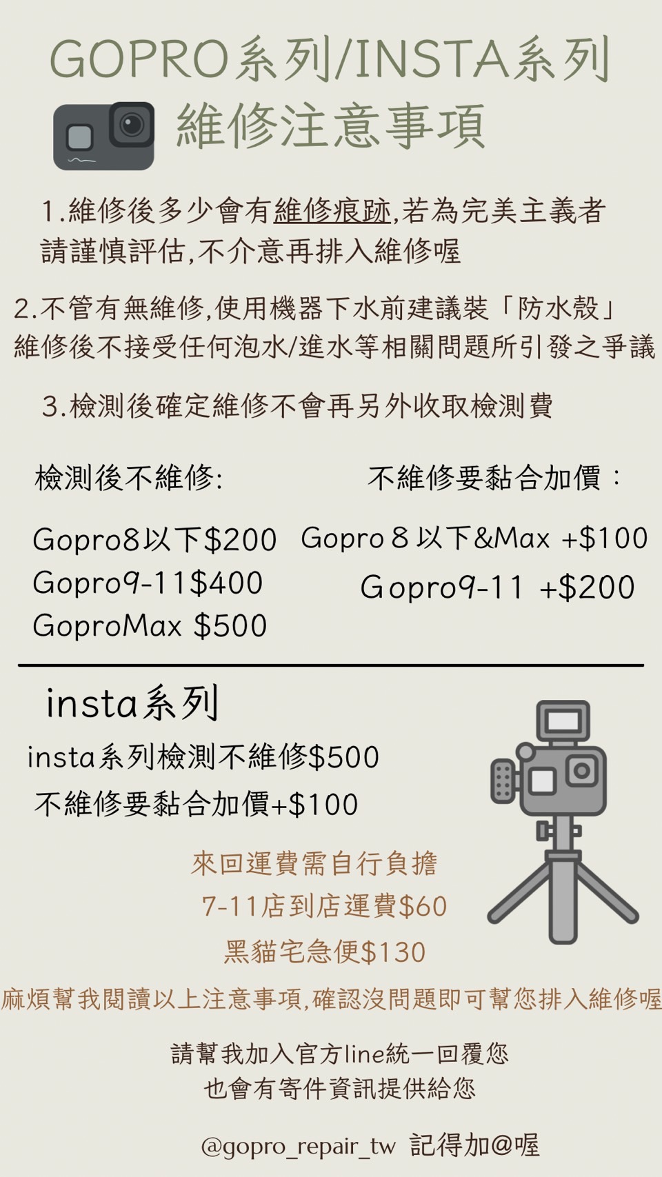 6. 諮詢、排修檢測請先加入官方LINE (@gopro_repair_tw)私訊我們